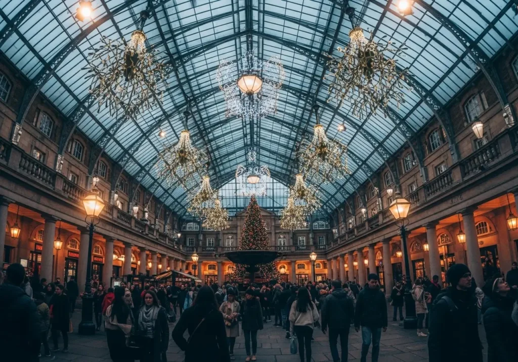Next, wander towards Covent Garden.This isn’t a pop-up market, it’s a permanent marketplace that transforms into a Christmas spectacular. Look up and you’ll be standing under a canopy of hundreds of mistletoe-inspired lights. A giant, brilliantly lit Christmas tree stands under the iconic market building, and you can often catch street performers and carolers adding to the merry atmosphere.