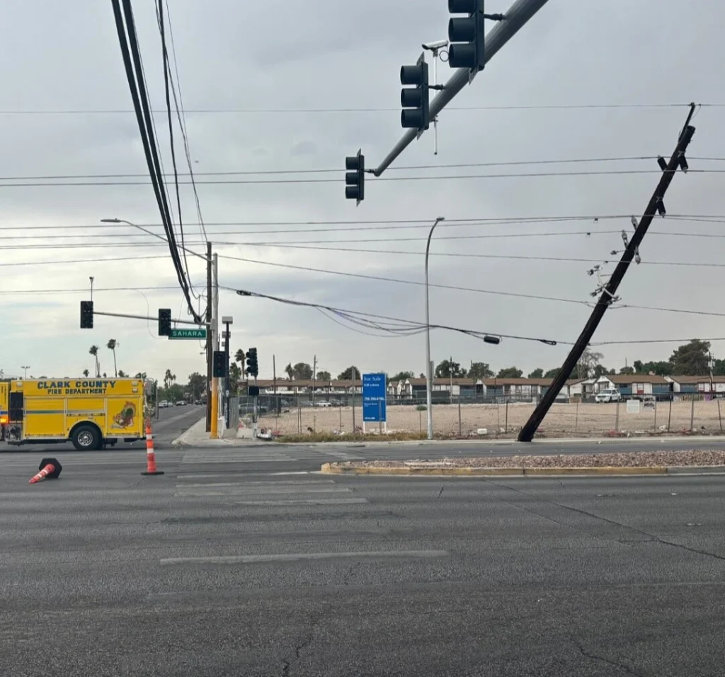 | Tropicana/Pecos | 8 poles snapped, live wires on road | Full closure |