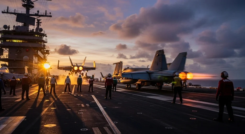In a tense half-hour over the South China Sea, the U.S. Navy faced a severe test when two of its aircraft, a helicopter and a fighter jet, crashed in separate incidents while operating from the same aircraft carrier. This startling pair of accidents has thrust the region’s operational risks into the spotlight. While all five crew members from both aircraft were safely rescued in a display of rapid response, the events have ignited fresh debates on military presence in these contested waters.