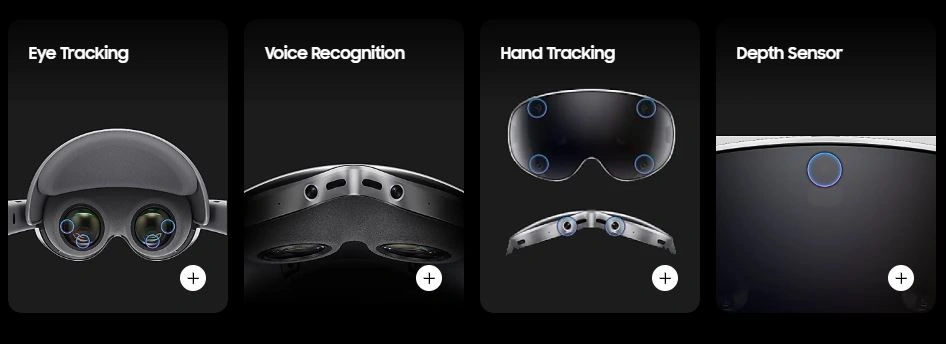 | Tracking & Sensors | 13 cameras/sensors total: 6 world-tracking, 4 eye-tracking, 2 passthrough, depth sensor |