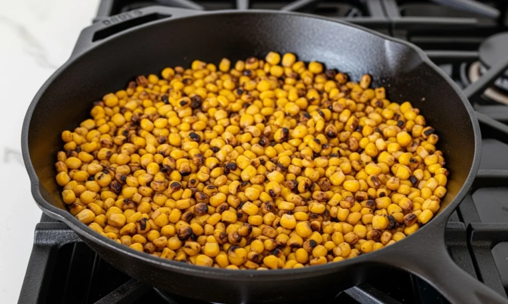 Char That Corn! (The Secret Step!): While the pasta cooks, heat a large skillet (cast iron is awesome for this!) over medium-high heat. No oil needed! Toss in your fresh (or thawed, very dry) corn kernels. Let them sit without stirring for a minute or two until they start getting those beautiful dark golden-brown charred spots. Give them a stir, let them char some more. This takes maybe 5-7 minutes total. You want that smoky flavor! Once nicely charred, take the skillet off the heat and let the corn cool for a few minutes. (If using canned corn, just drain it super well and skip the charring – it won’t be quite the same, but still tasty!)