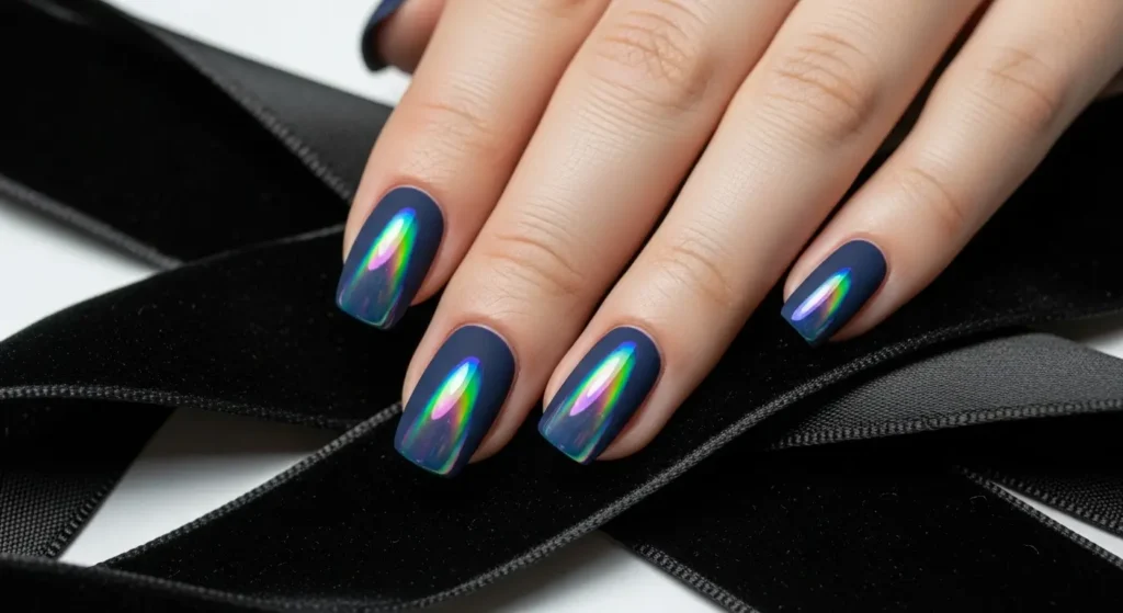 A magnetic gel polish that creates a mesmerizing, deep glow reminiscent of a cat’s eye or a shiny Christmas ornament; very popular for 2025.