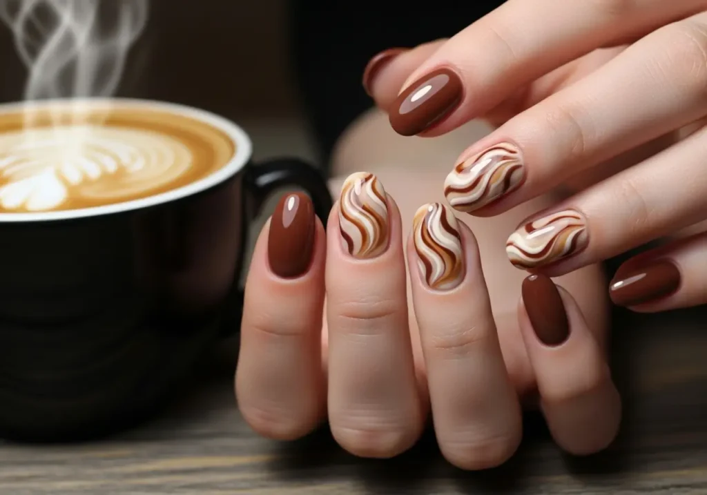 A deliciously creamy design featuring swirling shades of chocolate, caramel, and latte for a soft, dessert-inspired look.