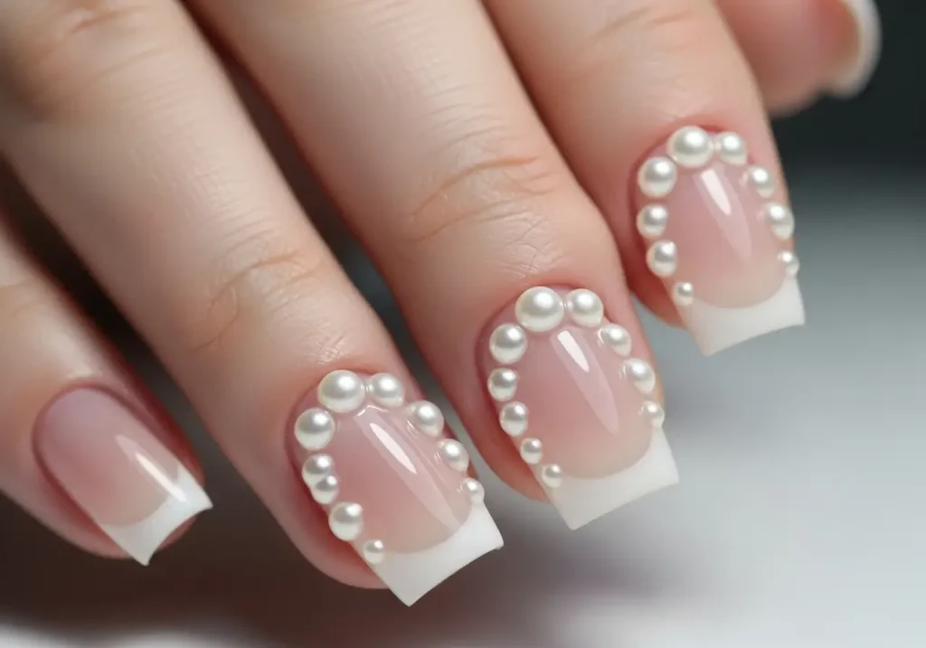 Minimalist and elegant, this design uses a sculpted band of pearls across the nail tip, mimicking a piece of fine jewelry.