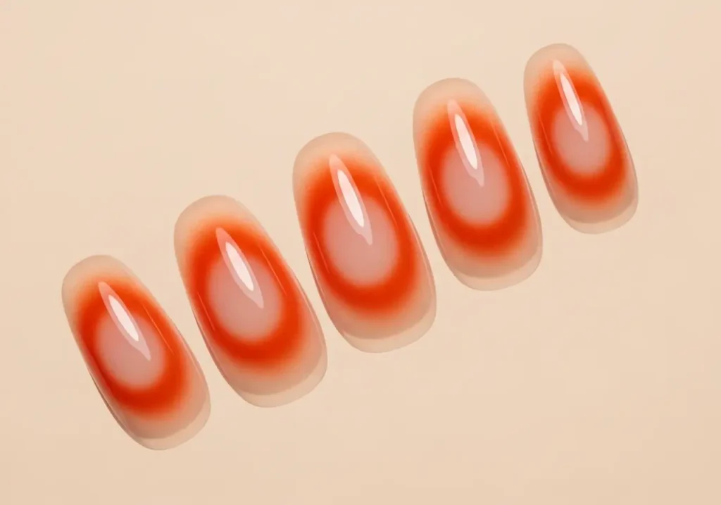 This soft-focus, airbrushed design features a burnt orange color that seems to glow from the center of the nail, fading into nothing.