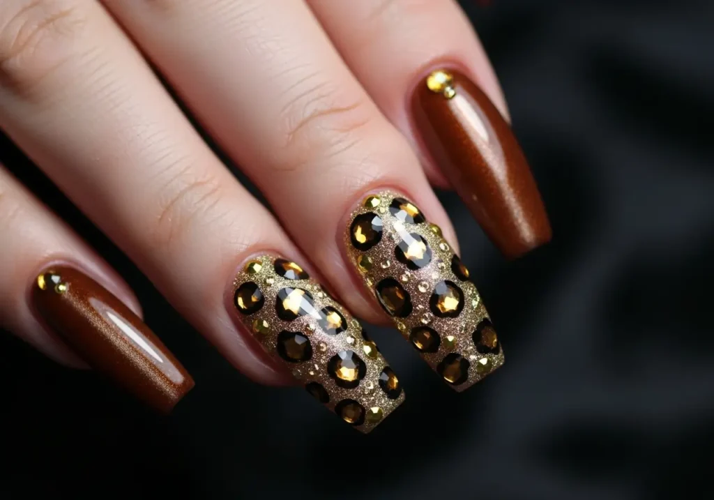 The earthy tone family is the most versatile. Rich shades like Mocha Mousse (chocolate brown), Gothic Glam Plum (eggplant), and Forest Green are classic fall colors that complement any skin tone and can be worn in both minimalist and dramatic designs.