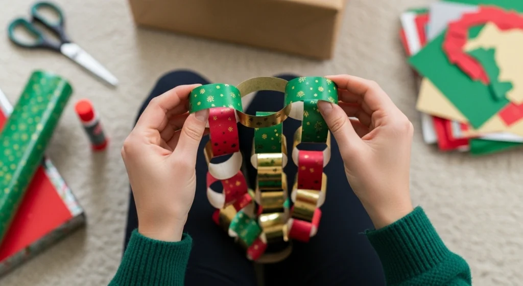 Embrace a dose of nostalgia with a modern twist. Cut strips of your favorite leftover wrapping paper, craft paper, or even colorful book pages. Loop and staple or glue the ends together to form a chain. This is a fantastic, low-cost way to add a long garland to a mantel, doorway, or wall.